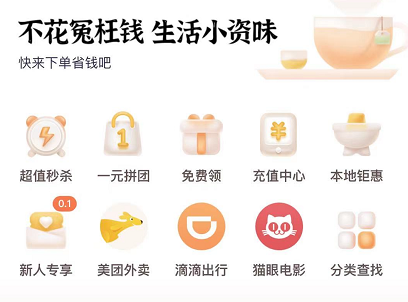 在主页面中,可以看到“超值秒杀”“一元拼团”“免费领”等活动分栏,通过这些分栏,可以领取美团、饿了么等外卖平台的大额优惠券。成功领取的外卖优惠券,可以直接在外卖平台中使用,免去繁琐步骤,一键享受折扣。对于上班族和学生党来说,使用乐商圈小金卡点外卖,可以节省不少的开支。