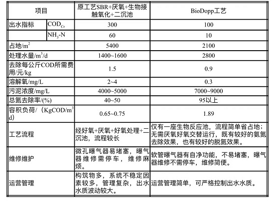由于原SBR工艺出水难以达标加之处理规模的扩大,需对场站原工艺进行改造,改造前处理量为1600m3/d;采用BioDopp工艺对原有池体进行改造后处理量增加至2800 m3/d,为原来的1.75倍。