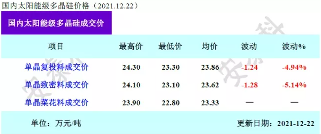 12月22日,硅业分会公布最新硅料价格成交数据!