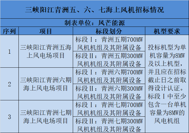 三峡阳江青洲五、六、七海上风电项目情况见下: