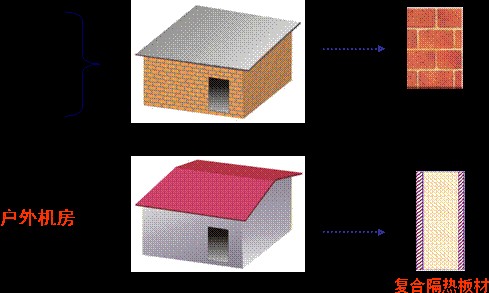 另外一种方式为借鉴海外发达国家的成熟经验,采用新型隔热防火的建筑材料建设的通信户外机房。这种方式建站迅速,成本低,使用方便,并根据中国的使用现状颁布通信机房的行业标准。此种新结构机房在行业内已经得到普遍认可,发展很迅速。